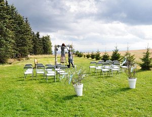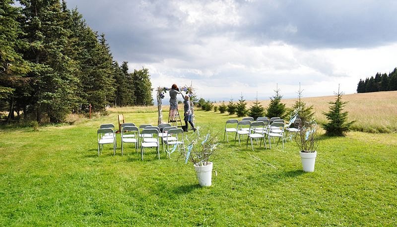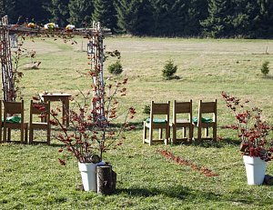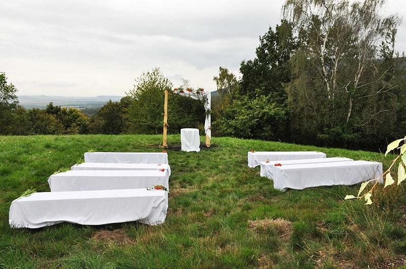 Dekorování místa obřadu se samozřejmě týká také ozdobení židlí nebo lavic, zajištění košíčku pro družičky, dekorace pod snubní prsteny, stolku pro oddávajícího a dalších důležitých maličkostí.