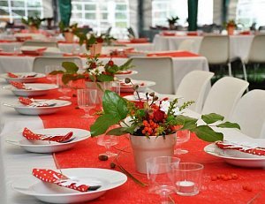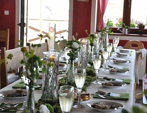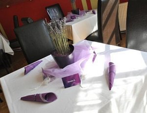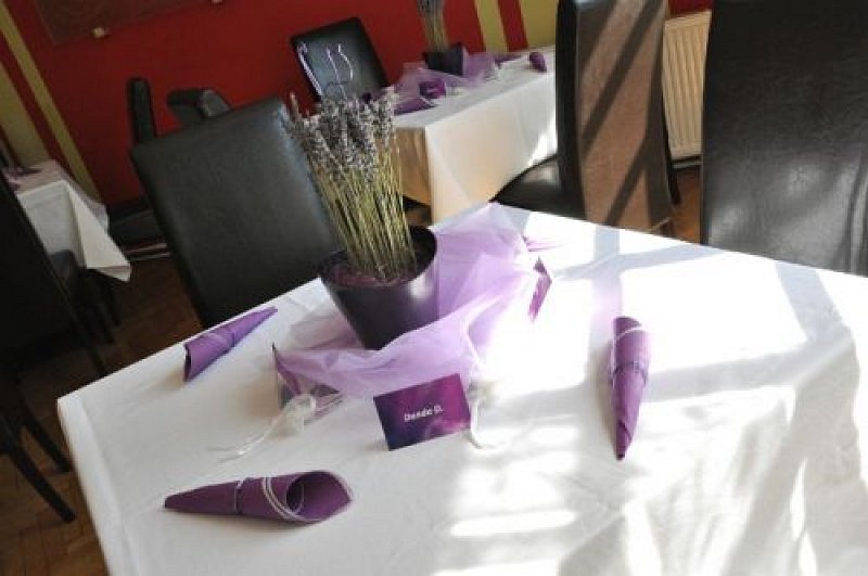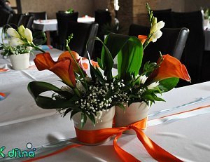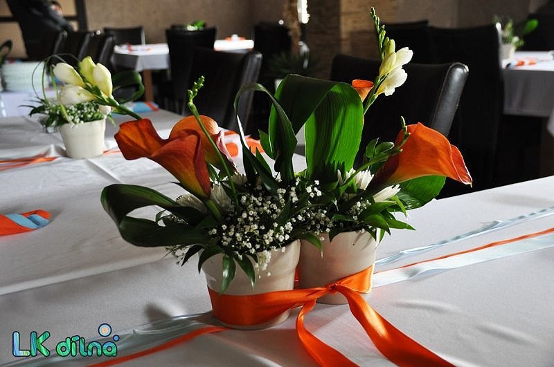 Samozřejmostí je použití jmenovek, které jsme schopni navrhnout a zajistit tisk. Na dekorování slavnostních tabulí a ostatních prostor je využíváno rozmanitých materiálů od výzdoby živými květinami přes výzdobu suchými květy a plody po dekorace z papíru, drátu nebo organzy. Vše dle přání zákazníka.